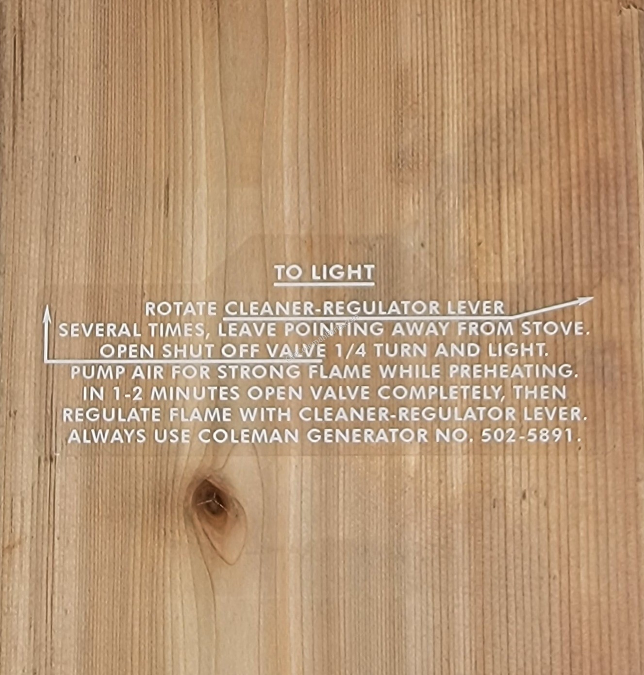 Lighting Instruction Decal for Coleman 502 Stove